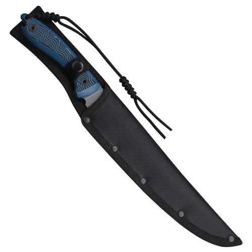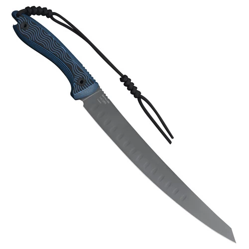 The blue and black G10 handle allows for ultimate grip and durability and this fillet knife comes with a nylon sheath for safety and ease of transport.