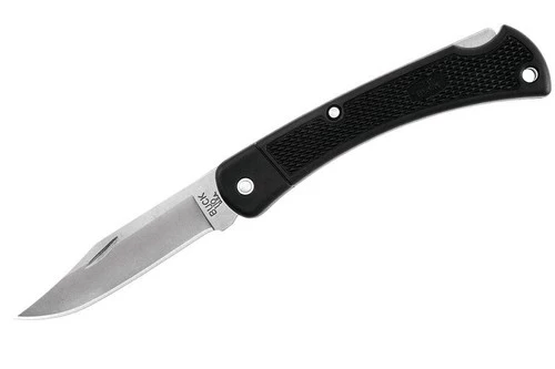 If you love your Buck 110 Folding Hunter but would prefer something with a lighter build, the 110 Folding Hunter LT is the answer. This lightweight version has been outfitted with a molded nylon handle that drastically reduces weight while maintaining the quality the 110 is known for. The razor sharp 420HC clip point blade is perfect for detailed work like piercing and opens with a standard nail nick and locks up solid with a lockback mechanism. It includes a heavy duty black polyester sheath for easy carry on a belt. The 110 Folding Hunter LT is perfect for those who want a full sized folder in a lightweight package.Â