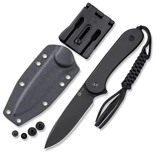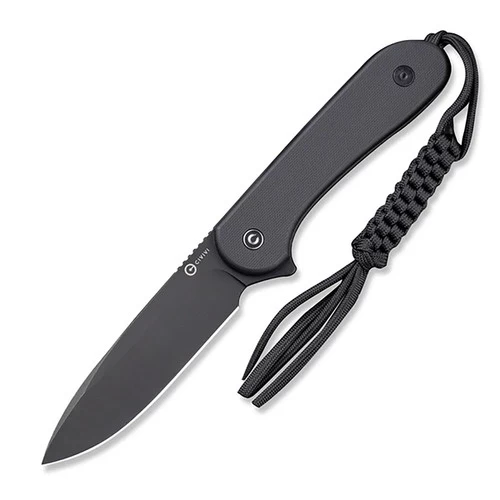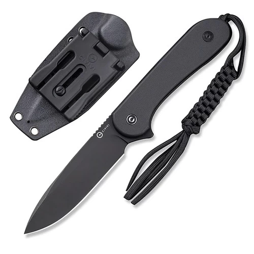 Lightweight and ergonomic, this version features a flat, textured black G10 handle for a sleek, all-black look. The black Kydex sheath includes a Bob Terzuola T-Clip for easy belt carry and CIVIVI’s included a tied paracord lanyard pre-attached to the knife.Â
