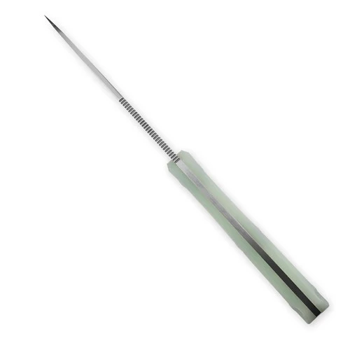 The Kizer Baby Series sharp medium fixed blade outdoor knife is designed in overall length of 7.79 inches and blade length of 3.85 inches, with leaf shape drop point blade style of 154CM blade steel material, aiming to be a good helper for those who are keen on hunting, fishing, diving and even cooking. The weight of Baby is only 4.16 oz with a kydex sheath.