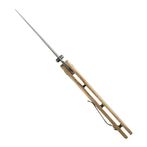 The Kizer Sliver is named so because it’s so slim and inconspicuous, yet can still pack a punch when you need it. Featuring a drop point CPM-S35VN steel blade, it opens manually via ambidextrous thumb stud and locks out with a sturdy liner lock. The beautiful brown micarta handle is durable and provides excellent grip. This compact folding knife is perfect for everyday carry—the slim “sliver” of a blade is long enough to cut steak, pare apples, or shave wood for kindling. Take this beautiful, compact everyday folder into the office, into the garage, or into the woods.