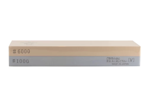 The Kori 7″ Vetrified Aluminum Oxide Whetstone 1000 & 6000 grit is an ideal combination stone used to create and finish a razor-sharp edge. Use the coarser side (1000 grit) to create a new edge by removing material. Once done, use the finer side (6000 grit) to refine, hone, and polish the edge. This Japanese waterstone needs to be soaked in water for several minutes (until the bubbles stop) before use. During use, we recommend splashing or spraying small amounts of water on the stone to keep it wet and create an abrasive slurry.