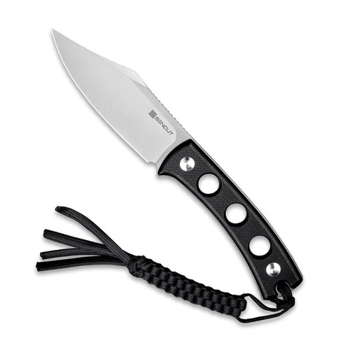 The fixed blade SENCUT Waxahachie is compact and lends itself to piercing and slicing tasks like skinning. The stainless steel clip point blade resists rust and holds a decent edge and the G10 handle is skeletonized to reduce weight. Use the kydex sheath for convenient carry and the paracord lanyard to display your favourite bead.Â