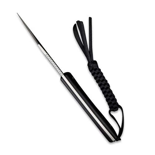 - Black kydex sheath and a paracord lanyard.