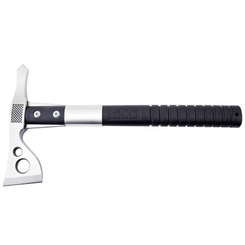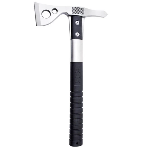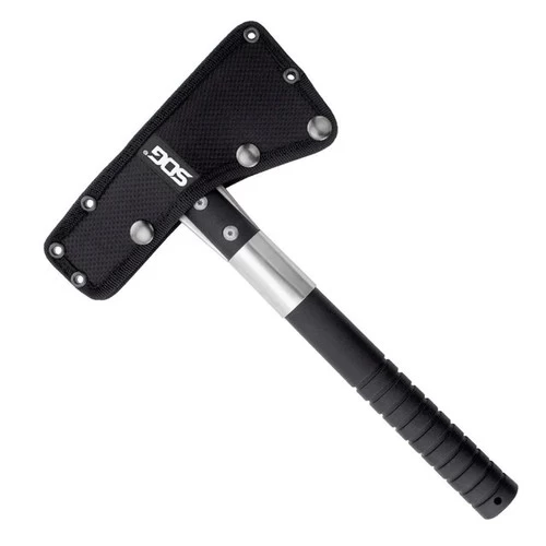 The SOG FastHawk is faster, lighter, more agile, and easier to carry than its sibling the Tactical Tomahawk. This is not to say it is not still powerful, versatile, and functional. It is a tool that will be used for much more than you might anticipate. Chopping, breaking, cutting, hammering, piercing, digging, prying, pounding shaving, notching, opening and throwing are all capabilities well within the FastHawk’s reach. The 420 stainless steel head with a hard cased black coating is mounted to the ballistic polymer handle with heavy-duty bolts and a steel ferrule to insure the strongest integrity. Side hammer checkering insures precision placement when swinging. Carried in a nylon sheath that can be mounted to belt, backpack, or gear. It is a universal tool for modern man.