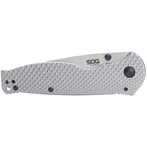 Sometimes a simple, honest knife with a SOG Sharp blade is just the trick. The Flash FL brings just that: a no-nonsense, all-metal construction, frame-lock folder, featuring thumb stud deployment, built on a proven SOG platform. Flash FL is the perfect entry-level knife built to last featuring a slim form-factor, textured handle, and a reversible, deep-carry pocket clip.Â
