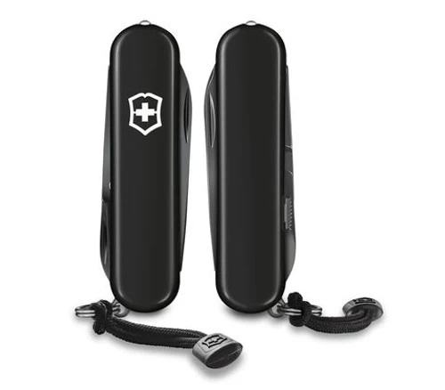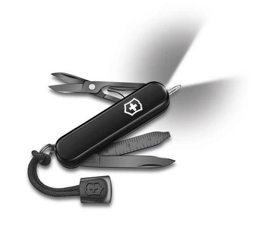 We’ve given our iconic pocket knife a glossy makeover, raising its style game to new heights: meet the lustrous Signature Lite Onyx Black. Thanks to a special polispectral process, the monochrome black finish not only looks timelessly classy, it’s extra durable, too. This knife includes an LED light and a handy ballpoint pen for quick notes and truly signature multifunctionality.