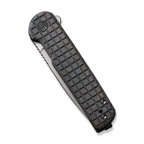 Slender, elegant, and eye-catching, the limited edition Charith from WE Knife Co. features a classic design made with premium materials. A pattern is milled into the titanium handle and the drop point blade deploys effortlessly with a flipper and locks up safely with a frame lock. Â