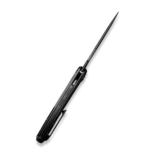 Elegant yet strong, the Quixotic folding knife from WE Knife Co. is a pocket-friendly size and weight but does not compromise on durability. The full titanium build is robust and rugged and the slight curve with a natural finger guard fits comfortably in hand. The drop point blade is made from premium CPM 20CV steel and features jimping, an aesthetically pleasing notch in the spine, and choil. The blade flips open with superior action thanks to the bearing pivot and the frame lock locks up tight.Â