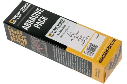 The Work Sharp Blade Grinding Attachment sharpening belts set, X4 fine, SA0003565 is a set of three fine sharpening belts for the Work Sharp Ken Onion Blade Grinding Attachment. These solid sharpening belts, with a fine grain size, are perfect when sharpening sharp knives, or when keeping your knives sharp. Our special Norton NORaX alumina oxide formulation refines and finishes your edge for a factory-sharp experience.Â