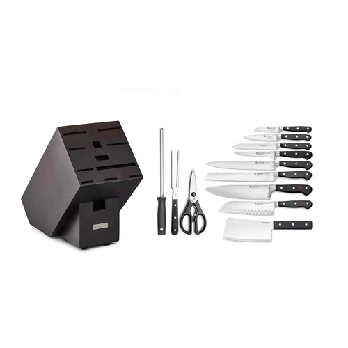 A comprehensive set of Wusthof Classic knives and tools, this set contains everything that you could possibly need to cover all of your food preparation tasks! The handy knife block provides protection for your blades as well as a visual compliment to your kitchen decor.