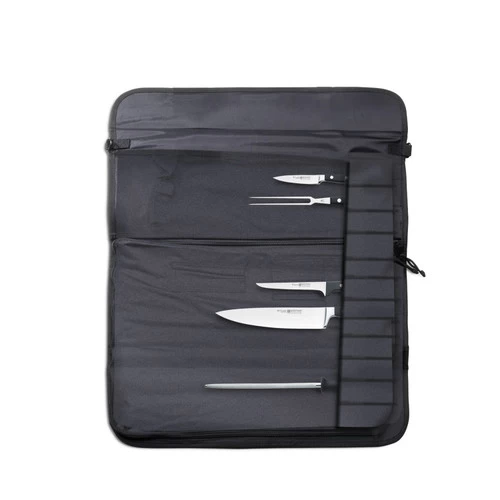 This 12 Slot Wusthof Cook’s Case is a professional high-quality knife case. This is rugged cordura (nylon) case is perfect for culinary students or professionals. This style is effective, offers plenty of storage, and is quite affordable.