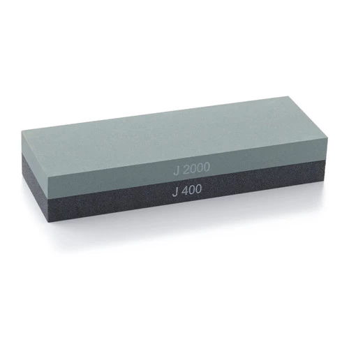 The Wusthof Combination Whetstone 400/2000 grit is a medium grade ceramic whetstone suitable for sharpening all straight edged knives. This whetstone is two-sided – the gray side is coarse and the green side is fine. The grey side is suitable for aggressively removing metal from small flaws in the blade. The green side is used to achieve the sharp edge.
